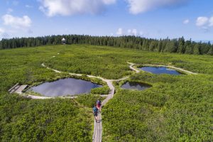 The other option is a hike to Lovrenška lakes, a group of small high-altitude lakes on the Pohorje plateau. The path goes over wooden walkways through quiet nature. The lakes are calm and reflect the trees around them, creating a special atmosphere. They were formed thousands of years ago and are home to rare plants. This is a peaceful walk where you can take nice photos and enjoy the natural surroundings.